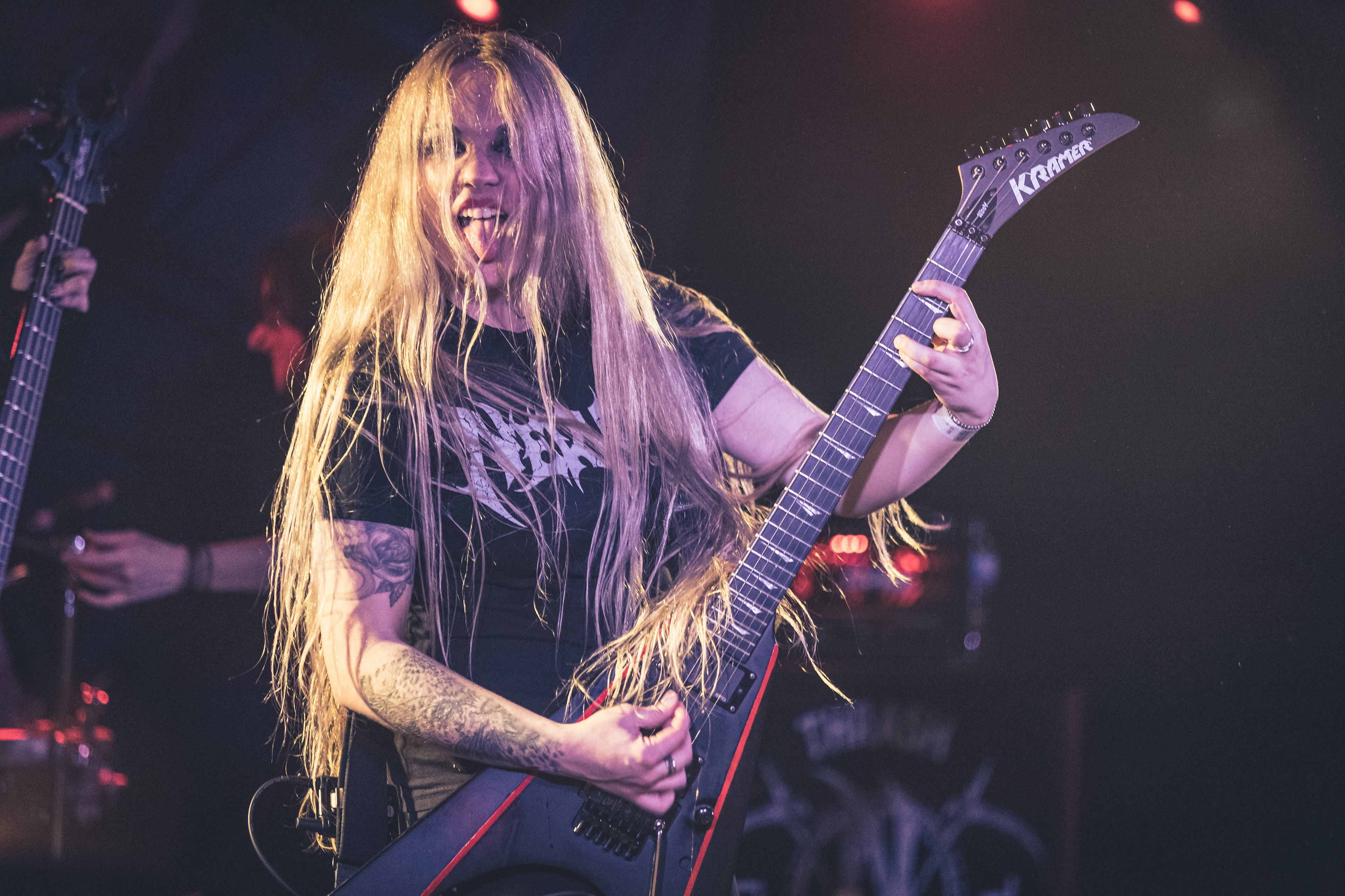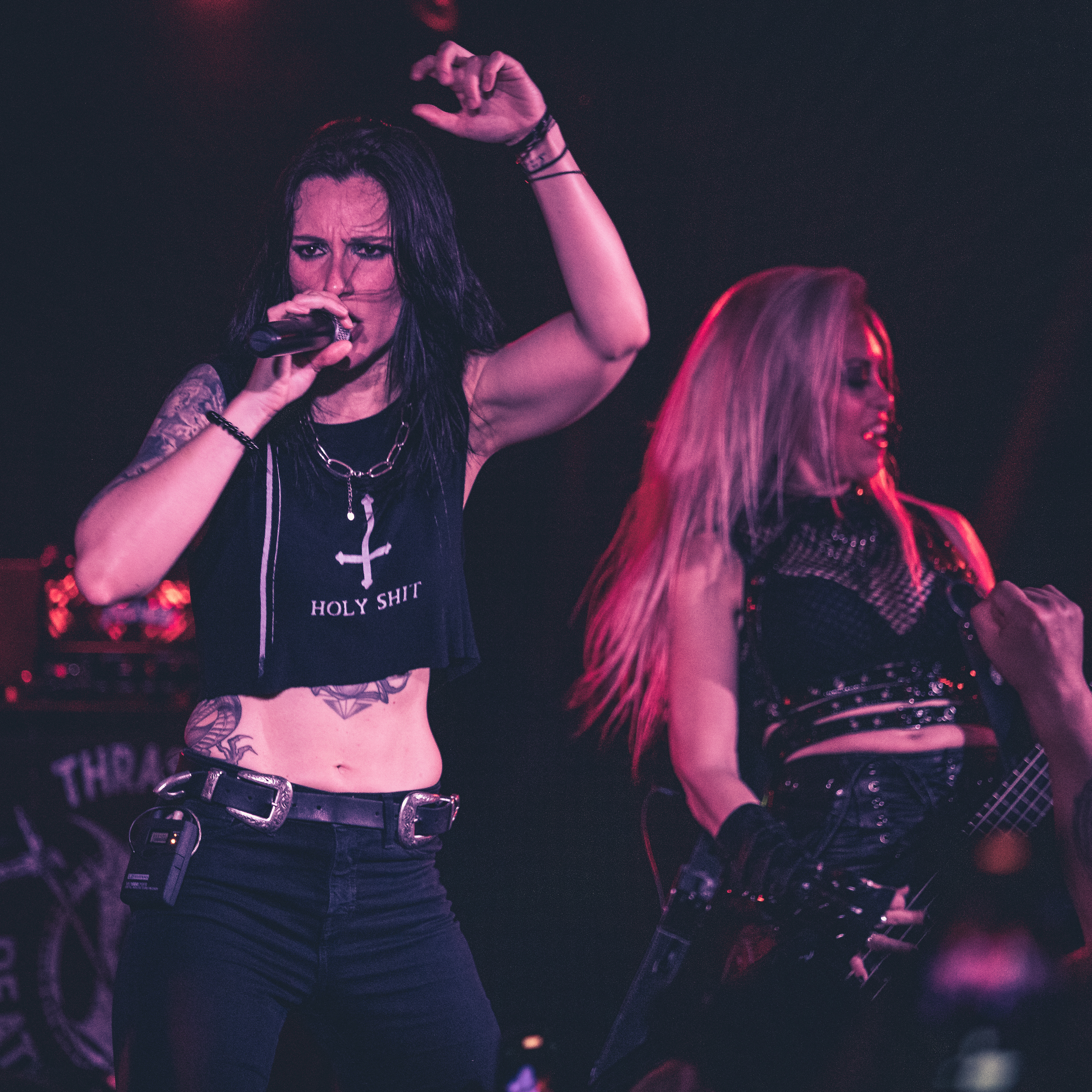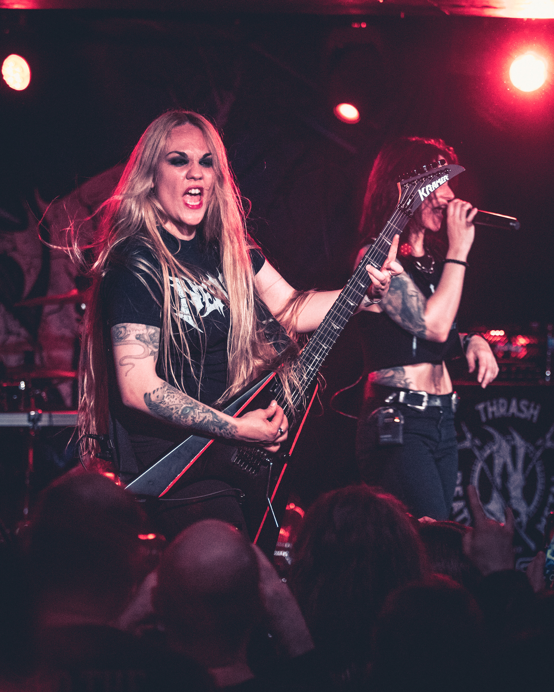 Originally formed in Brazil, all-female Thrash Metal band Nervosa currently has Diva Satanica (Spain) on vocals, Mia Wallace (Italy) on bass, Eleni Nota (Greece) on drums and founding member Prika Amaral (Brazil) on guitars. From the performance at The Underworld, London.